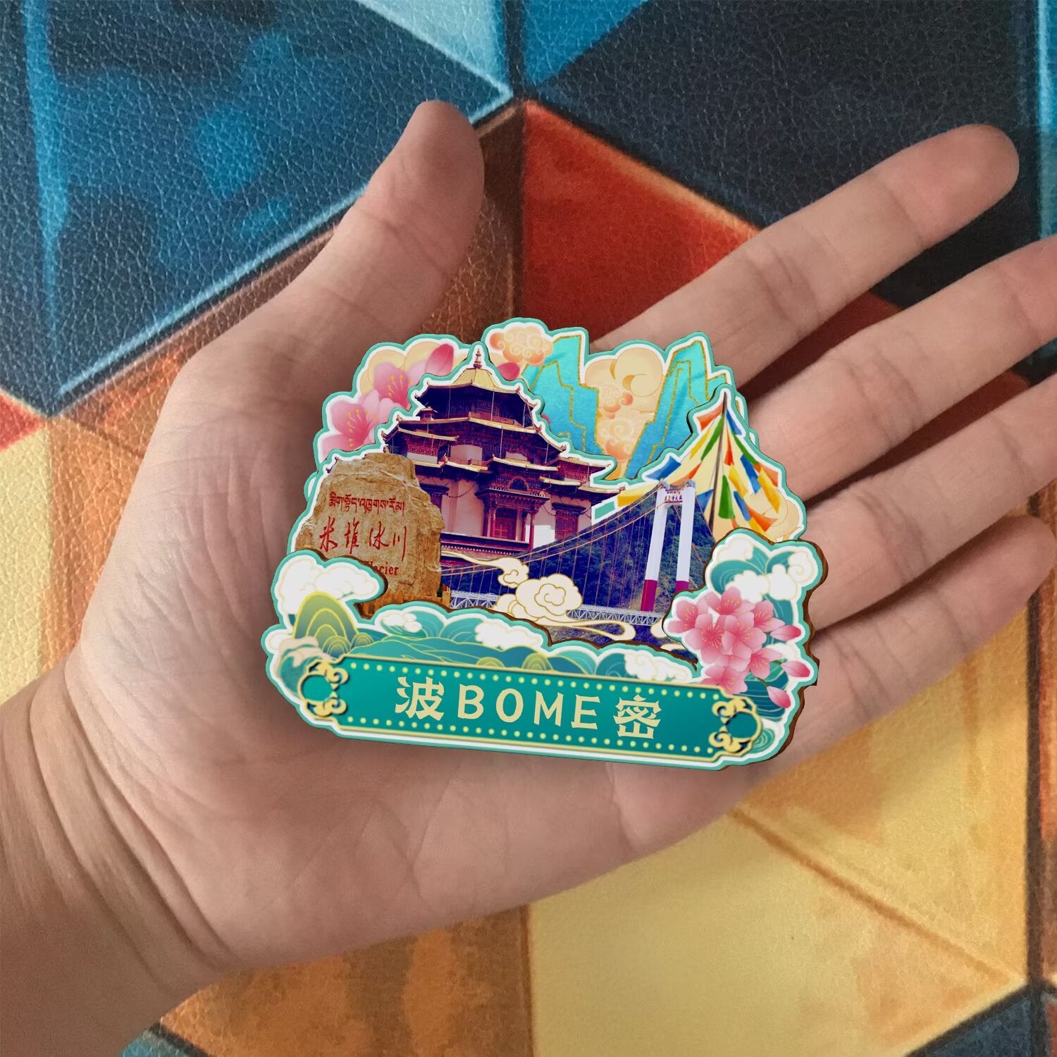 2. Hergestellt aus MDF-Dichteplatte, mit einem runden Magneten auf der Rückseite und einer Schicht BOPP-Glanzfolie auf der Musteroberfläche;